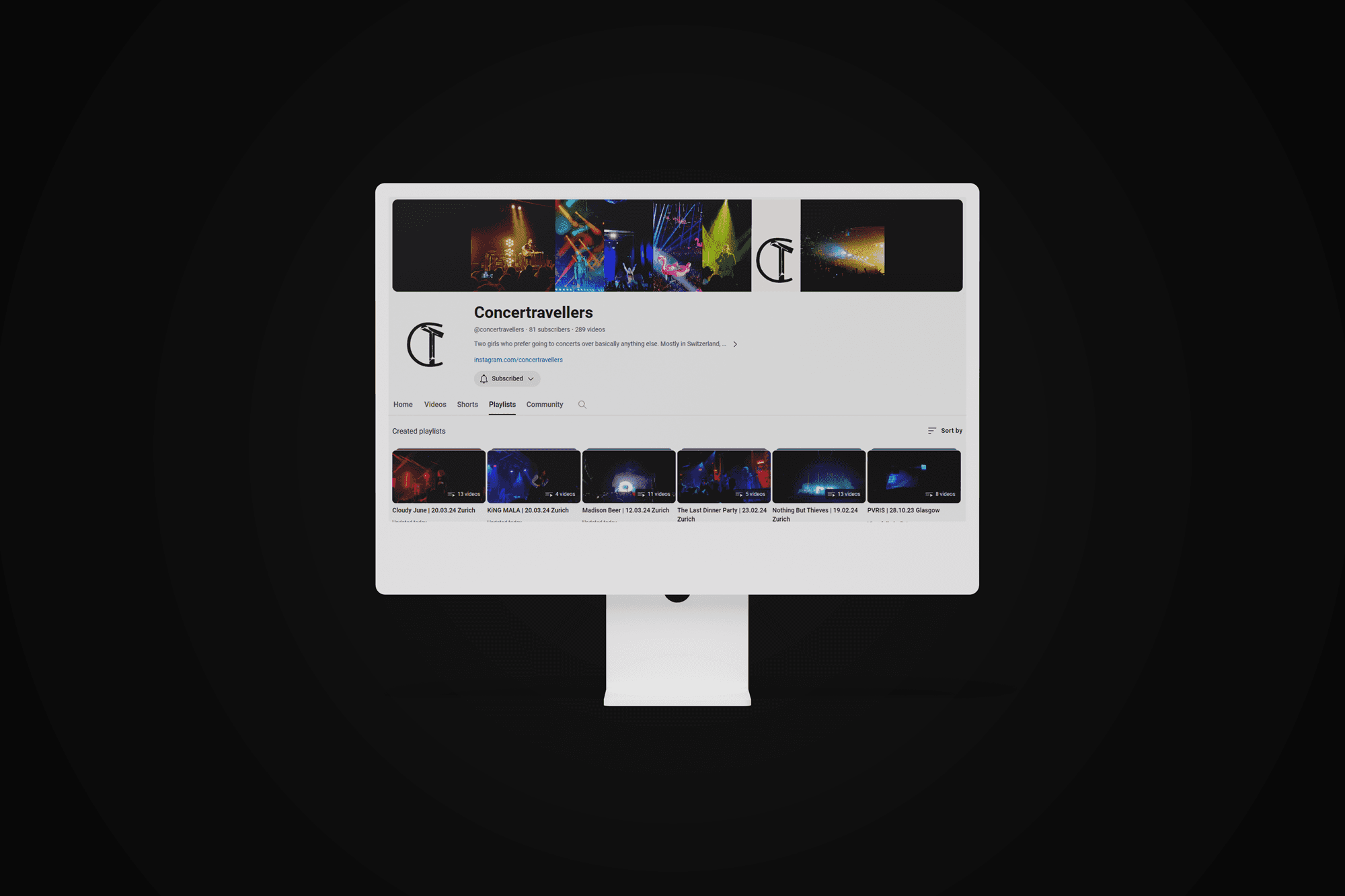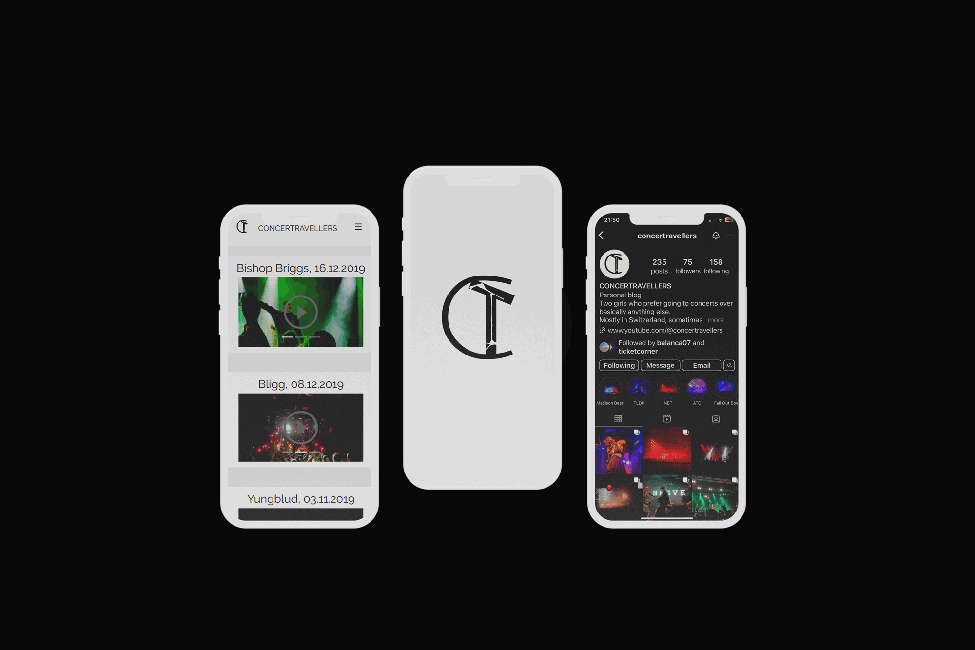 Going to concerts is one of my passions. In 2017 my friend and I decided to start "Concertravellers" – an Instagram account that helps us keep track of the concerts we went to and is a place for all of our memories. The prject now spans the aforementioned Instagram account, a small platform on YouTube as well as a website, that's went through a couple of iterations.