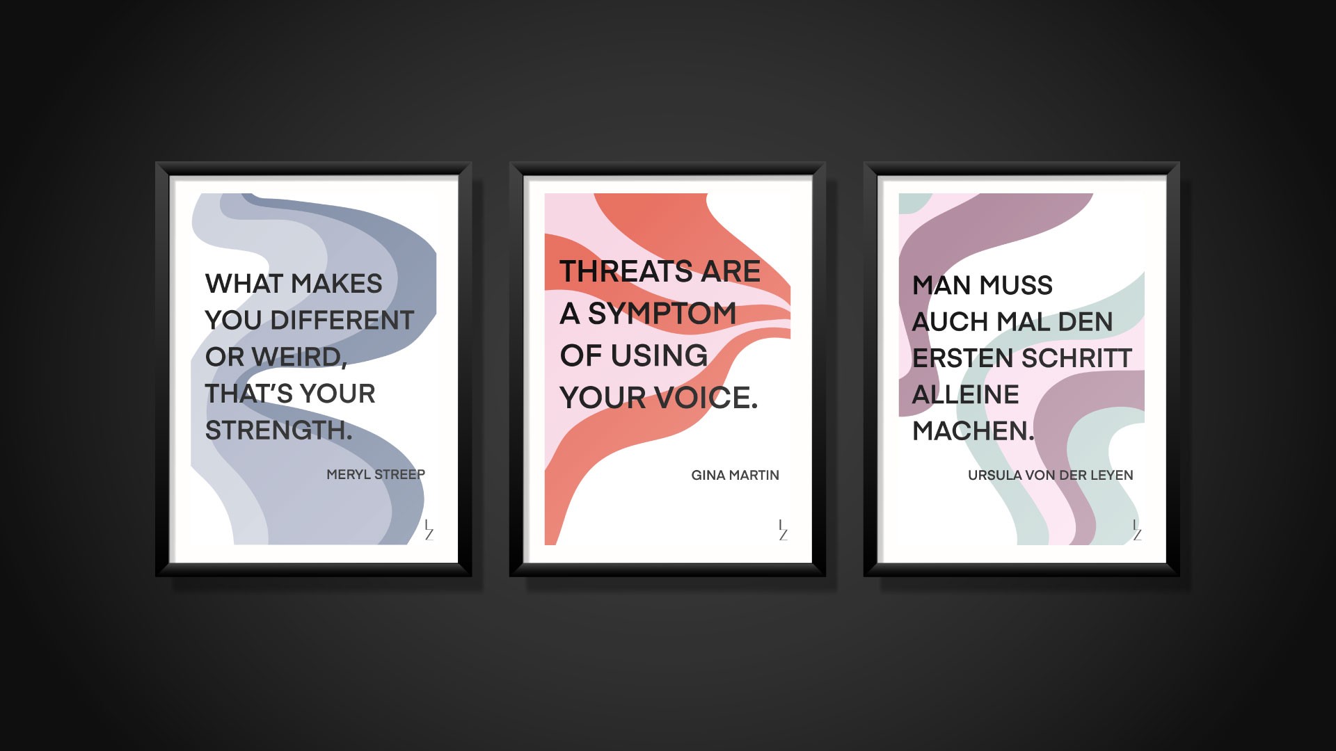 "Quotes 2 Be Seen" is a series of posters with inspirational and empowering quotes by and for women. I got inspired for this series while watching Gina Martin's TED Talk. She showed a quote that really resonated with me and I felt like that there are more quotes out there that should be seen.
